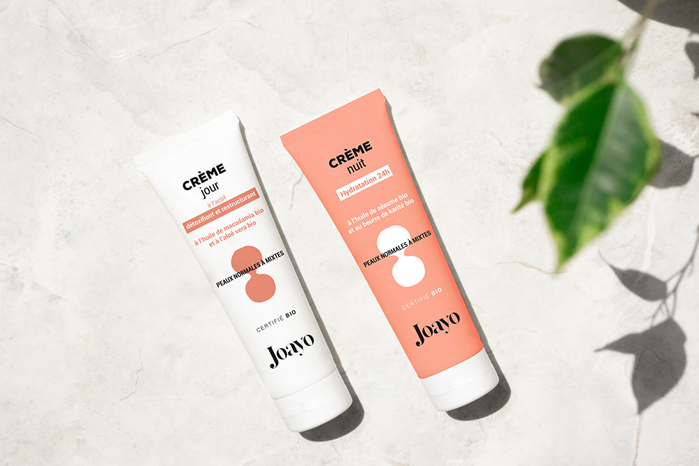 Pionnier de l'agriculture biologique et du développement durable depuis 1986, cette expertise nous permet de proposer aujourd'hui une gamme de soins bio certifiés Cosmos Organic. Ce qui signifie que, pour chaque produit JOAYO, 95% au minimum des ingrédients sont d'origine naturelle, et que l'on retrouve dans la formule au minimum 20% d'ingrédients issus de l'agriculture biologique.